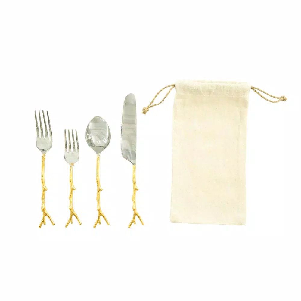 Truly unique, this set of flatware has twigs for handles and is ideal for a cabin or paired with table decor of natural wood. Use plates or napkins with greenery or floral designs and use wood coasters under the glasses. Grab some twigs from the yard and paint them gold and place in a vase for the center of the table.