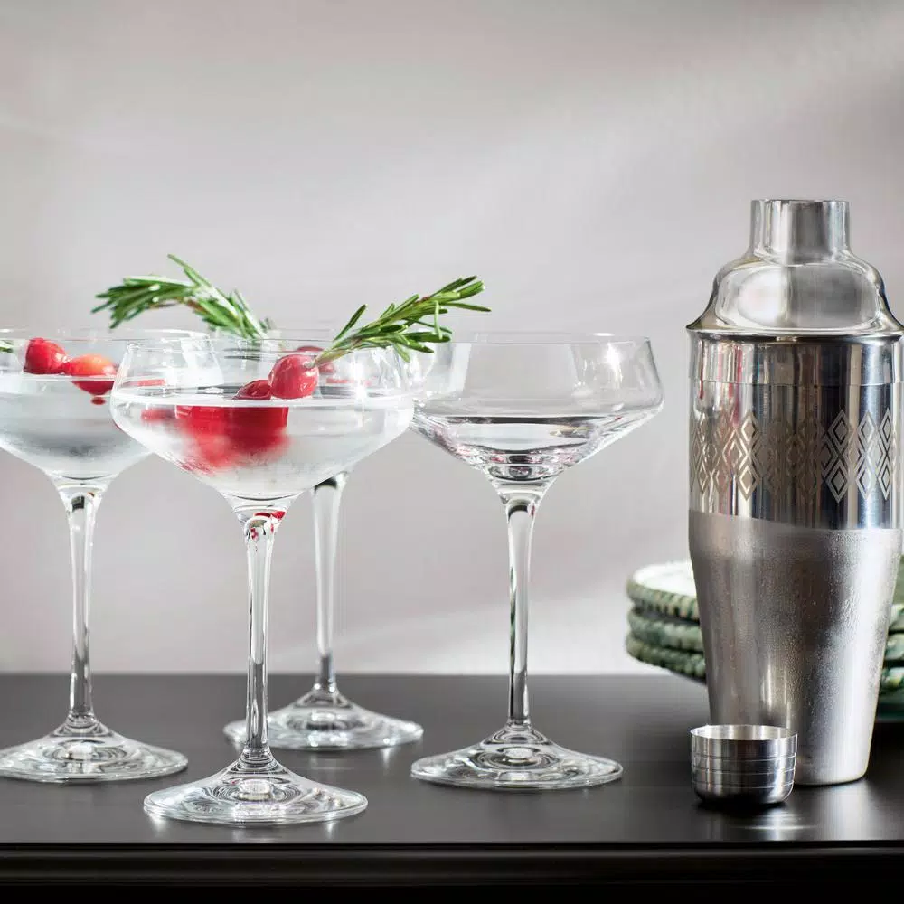 - Subtle but stylish classic cocktail diamond pattern is laser etched onto polished exterior; interior features laser-etched measurement lines for perfect blending of mixed drinks