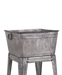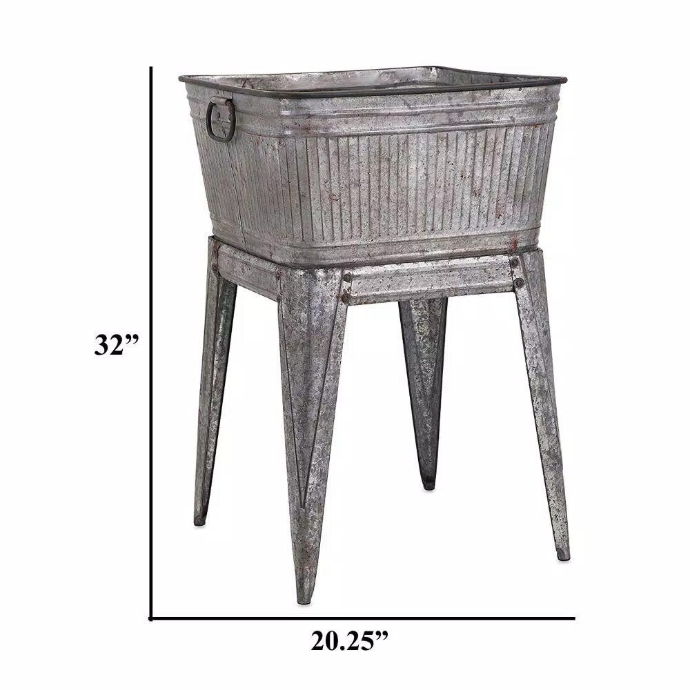 Bring home this unique multifunctional piece in your home and make a great everyday use. It has a 32 in. height that can be used for any gathering, large garden planter or spacious storage. It is made of galvanized metal, supported by sleek angled legs while the tub at the top feature side handles, providing great grip. It is leak-proof and rust-resistant and comes with a weight capacity of 65 litres that can be used for serving multiple purposes.