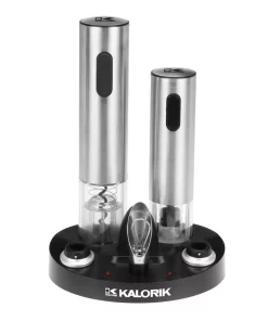 Make opening your wine easy and fun with this black, Geminis electric wine opener. Skip the struggle with this stylish, simple-to-use accessory. Makes a great gift for your favorite sommelier. Open up to 25 bottles on a single charge. Includes a foil cutter and charging stand.