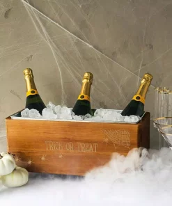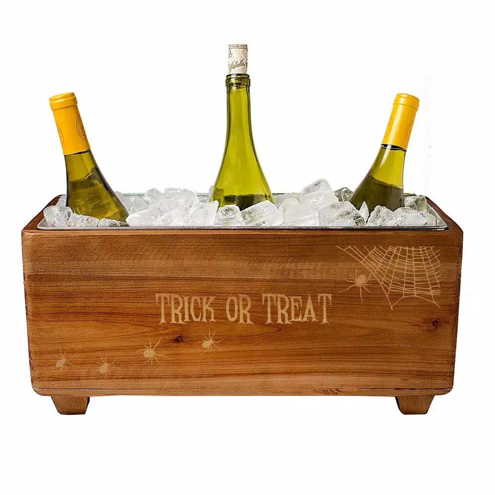 The Halloween Wooden Wine Trough is the ideal piece for your haunted party. An ice bucket perfect for entertaining, the rustic wine cooler features a removable galvanized metal bucket to keep ice from melting quickly and a rustic wood exterior. Gift it to your witchy hostess or keep as a piece for your own collection.