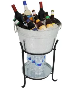 - Features: rustic wooden structure with a galvanized metal insert for holding ice or other substances and a halloween design