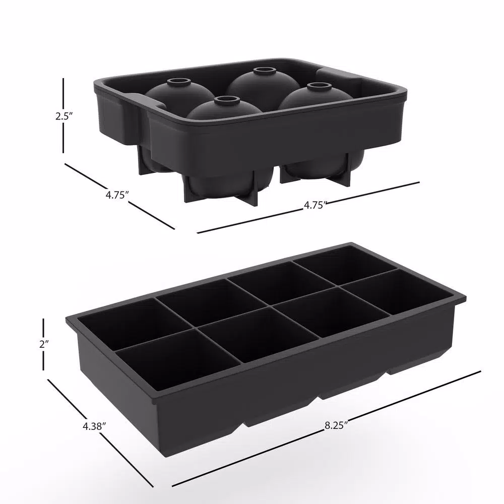 - Ice ball mold yields 4-molds with full dimensions of: 4.75 in. L x 4.75 in. W x 2.5 in. Dia