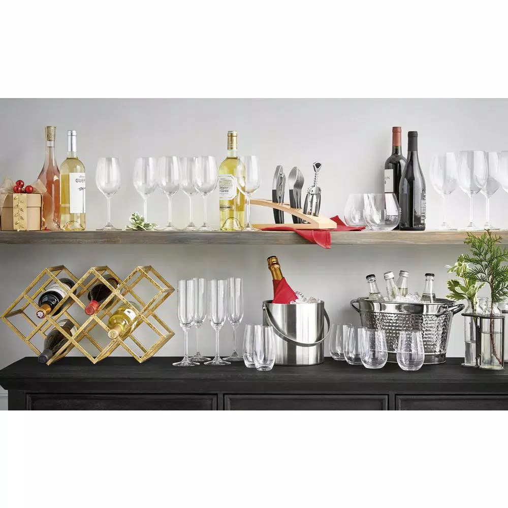 If Wine is a staple in your household, The DANYA B Sparkling Gold 9-Bottle Metal Wine Rack will cradle your favorite wines in a rack of golden affluence. Whether set vertically or horizontally, the DANYA B Sparkling Gold 9-Bottle Metal Wine Rack will add the perfect accent to your bar, kitchen or dining room and heighten your wine pleasure with the touch of elegance. How your store your wine matters. Where you store you wine and how it looks makes you matter.