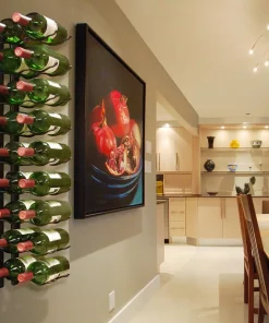 Create a dazzling wine display with the Epicureanist 18-Bottle Metal Wine Rack. This wall-mounted metal rack can be fastened to almost any wall or inside of a wine cabinet. The unique, patented design features two identical pieces that cradle each end of your wine bottle for a stunning display.
