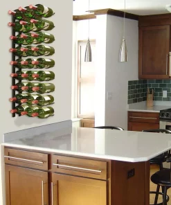 The Epicureanist 27-Bottle Metal Wine Rack can be fastened to almost any wall to create a unique wine display. It features sturdy metal construction and artfully displays your bottles with the labels visible for show. This patented wire rack from Epicureanist consists of two identical pieces that cradle each end of the body of your bottle for a dazzling display. Rack stores bottles 3 deep.
