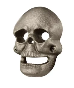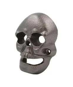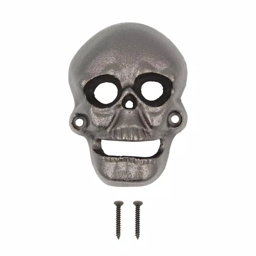 This unique skull bottle opener adds character to the side of your cabinet or kitchen island. Suitable for indoor and outdoor use, the durable piece is crafted from cast iron material and will remove bottle caps in a single, swift motion. This easy-to-install opener complements any decor and is compatible with most standard bottles.