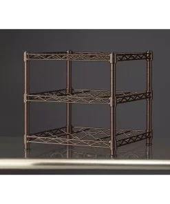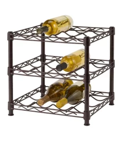 Keep your favorite wine within reach with this 3-shelf wine rack. Providing storage for up to 12 bottles, this durable wine rack features an antique bronze finish. It is crafted from steel for lasting use and fits underneath mot standard kitchen wall cabinets, making it a perfect choice for your countertop. This wine rack assembles in minutes without tools.