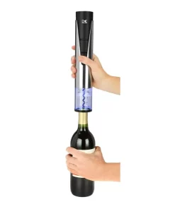 KALORIK’s 2-in-1 Wine Opener and Preserver makes enjoying and keeping your favorite bottles fresh and accessible, time and time again. High-tech, rechargeable, and cordless electrical opener and preserver is both functional and stylish with its brushed stainless steel housing and easy to use operation. Open bottles of all shapes and sizes. Cork is automatically removed and released in a matter of seconds. Vacuum seal partially consumed bottles, removing excess oxygen from within to avoid oxidation and keep your wine fresh. Just press down on the bottleneck to open up to 30 bottles and seal another 50 on an 8-10 hour charge. Blue indicator light lets you know when in use or charged and includes a charging base, foil cutter, and 2 wine stoppers; all of which conveniently stores in the base. A must have for the wine connoisseur.