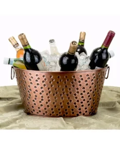 - Antique copper finish and decorative embossed design of this party tub will lend an element of class to any event, handy side handles
