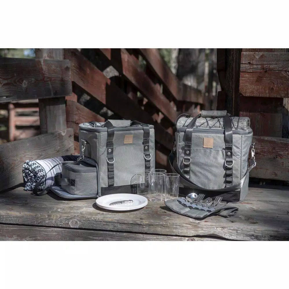 When was the last time you were PROUD of your cooler? Was there ever a time? The Frontier Picnic Utility Cooler is here to change that. While most coolers just. A know, ‘cool’ – this sleek two-tiered shoulder cooler comes with a full cutlery and meal set for four. Serve your meal comfortably with the removable, heat-sealed cooler and carry your water/beverage easily in an side storage pocket. Sling the whole thing comfortably over your shoulder when your done, and be proud of your awesome cooler.