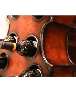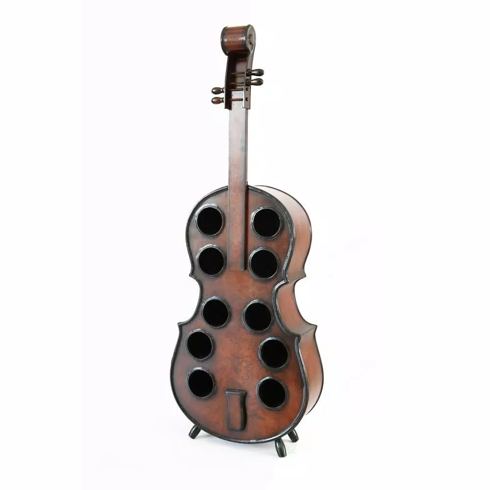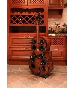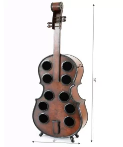 This wooden violin shaped wine rack will add a final touch to your dining room or wine caller. For an authentic appearance, the violin wine rack has curved sides and a slim neck with a shaped wooden scroll. Designed to hold up to 10 bottles, it provides convenient and practical storage as well as classic elegant style. Freestanding design keeps the wine stand steady and your wine collection secure.