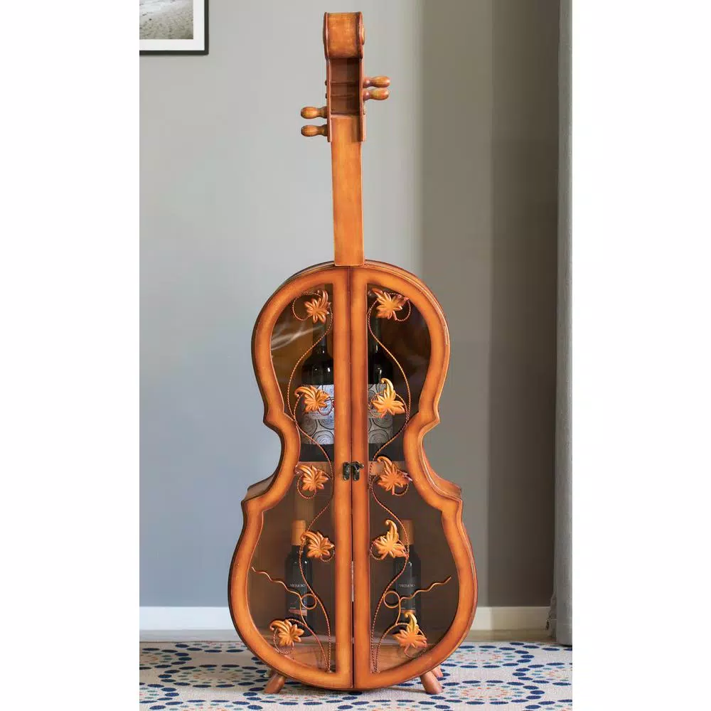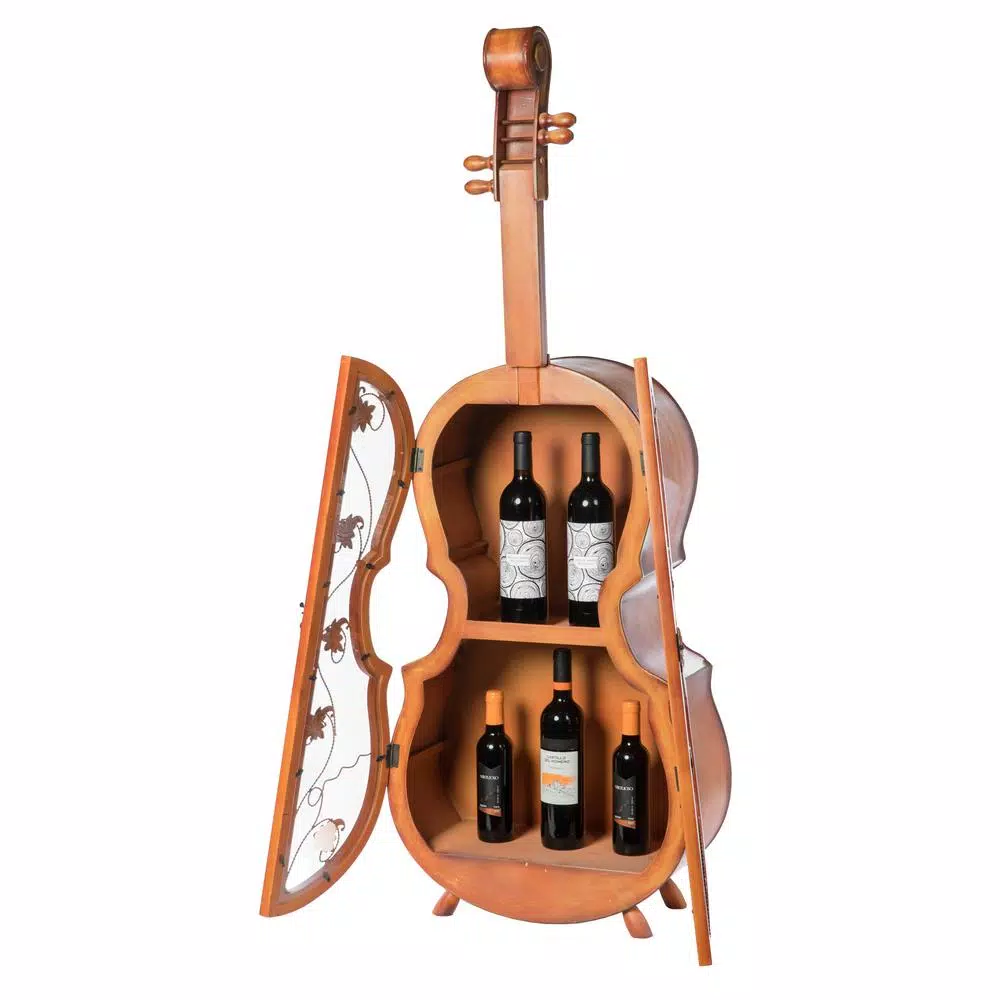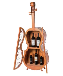 This wooden violin shaped wine rack will add a final touch to your dining room or wine cellar. For an authentic appearance, the violin wine rack has curved sides and a slim neck with a shaped wooden scroll. Designed to hold up to 6 bottles, it provides convenient and practical storage as well as classic elegant style. Freestanding design keeps the wine stand steady and your wine collection secure.