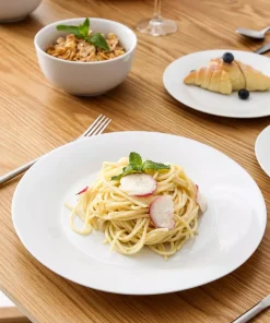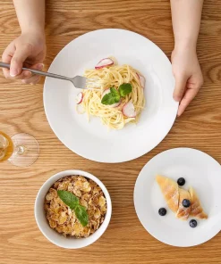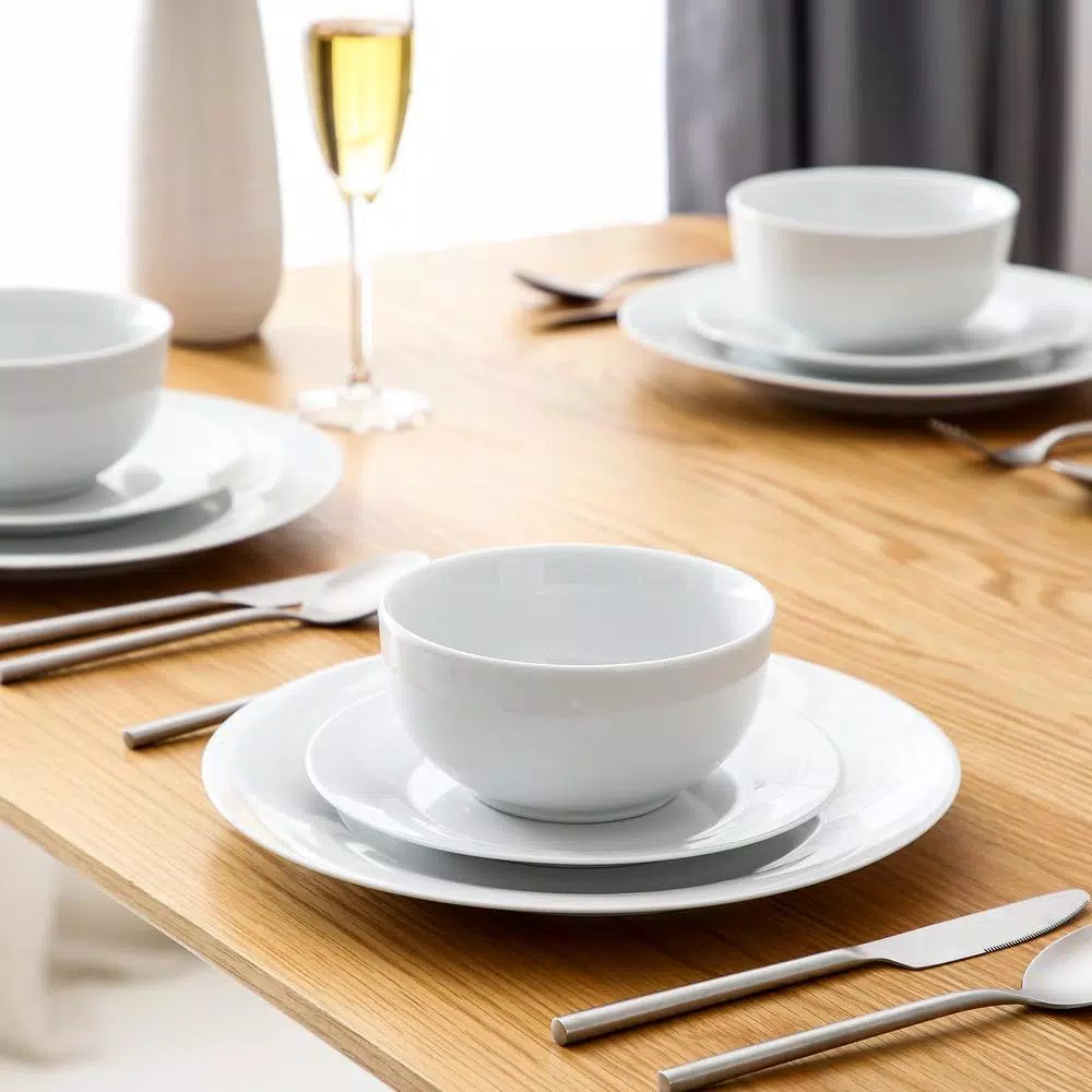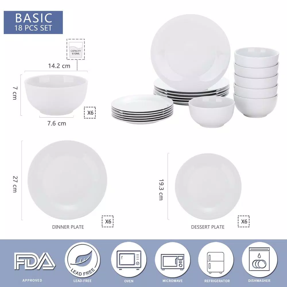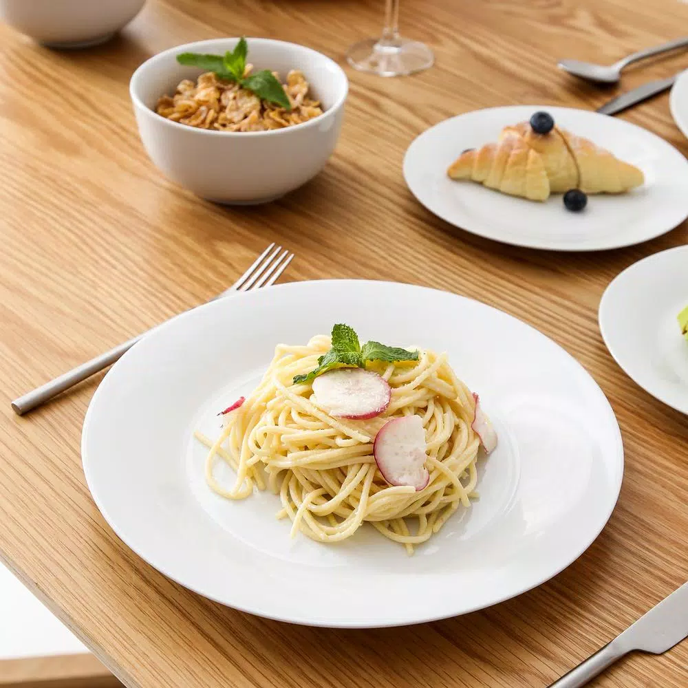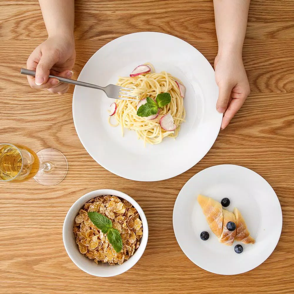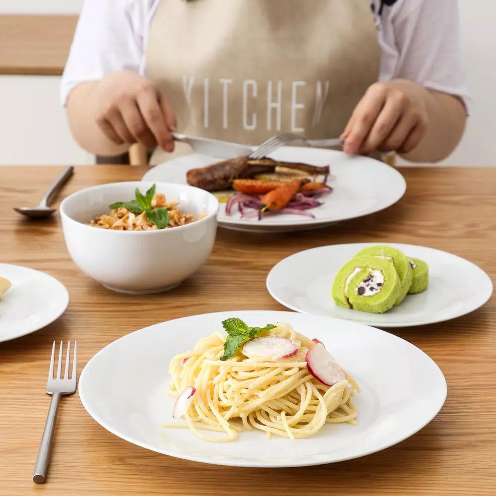 There is no denying that Meal time is one of the most important aspects of any culture. A warm family atmosphere requires different settings than a romantic evening for 2. No matter who are eating with, and where you are eating, dinnerware set are crucial and closely related to our health. Exquisite white dinnerware set add advanced sense and bring you fabulous experience for meal. Lead-free and toxic-free porcelain dinnerware set, different sizes and functions of dinner plates fit most food in daily life. Adopted with high-temperature tech in process of production, safe in oven, freezer, dishwasher and microwave.