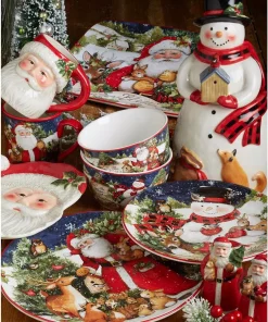 Smiling Snowmen joined by their woodland pals decorate Certified International’s ” Magic of Christmas- Snowman” ceramic dinnerware and serve ware, designed by Susan Winget. Sentiments of the season such as ” Winter Blessings” and touches of plaid add charm to these 4 assorted snowy scenes, which coordinate with the ” Magic of Christmas Santa ” collection. Add a whimsical touch with the 3-d Snowman cookie jar and S and P set.