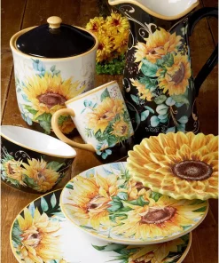 Walk through the sunshine with Certified International’s Sunflower Fields ceramic dinnerware and serve ware collection designed by Nancy Mink. Exquisitely detailed, colorful sunflower blooms decorate every item , complemented by unique 3-D sunflower dessert plates and ice cream bowls. Beautifully detailed with a medley of vibrant hues.