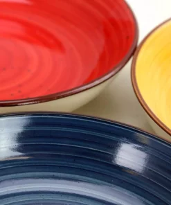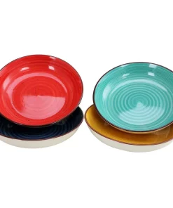 Gibson Color Speckle 4-piece 10.75 in. pasta bowl set is the most inviting color rich dish set. Its rich colors will have your guests asking for more of the food you are serving. The dishes are stoneware with gloss finish.