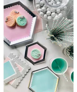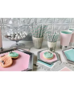 These classic hexagon shaped blush pink beauties have a metallic silver rim and will make you want to host a fancy party or event at the first change you get, and add a touch of elegance to any event. No one will believe these are paper as they look like fine dinnerware. Impress your guests for a beautiful brunch, boat party, Picnic, New Years, BBQ, Mother`s Day, garden party, birthday, and more. Your guests will not believe that these are paper plates. .Package includes 16-paper Dinner Plates from the SugarPlum Collection.