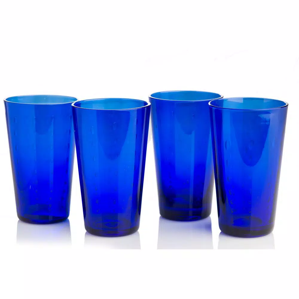 This is an interesting take on bubble glass. Our master glass blower has blown bubbles in a vertical pattern creating a raindrop feeling. An old fashioned glass is also available. Choose from cobalt blue, garden green, or clear. The glass comes as a set of 4.
