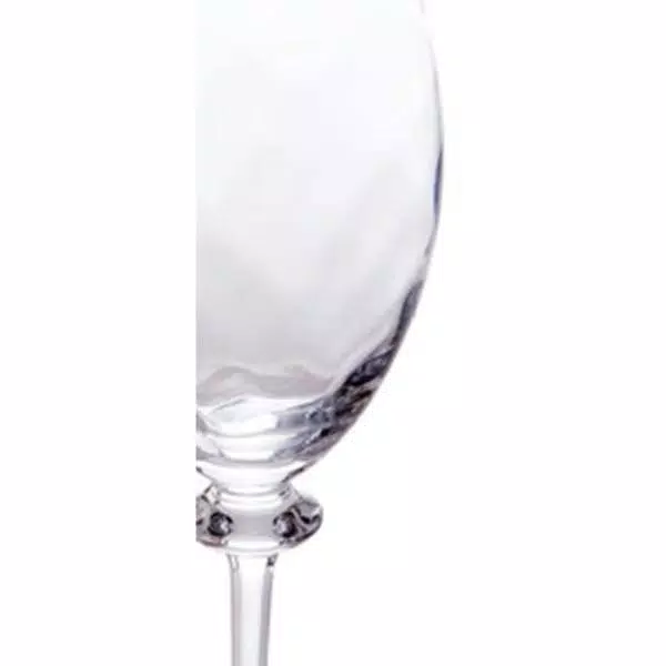 This is a slender all purpose wine glass with a slight optic body. It is a beautiful addition to any table or bar tray. All are handmade in this set of 4.