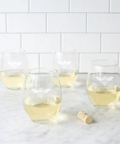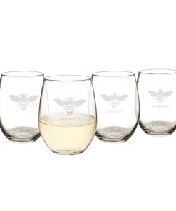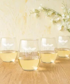 The Bee Thankful Stemless Wine Glasses are perfect for everyday dining and special occasions. Engraved with a cheerful “bee” design and phrase, each glass is beautifully crafted with a flat bottom and modern belle. This wine set would be a great gift for any wine/bee enthusiast or an excellent addition to your own glassware collection.
