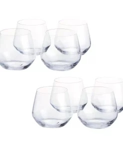 Splendid for serving red or white wine, these lead-free crystal stemless wine glasses from the Home Decorators Collection Genoa collection make a savvy addition to your home bar. Their stem-free design lets you hold the glass easily, while its deep V-shape gives your beverage room to swirl. Italian-made and ultra-clear, the set of 8 is top-rack dishwasher safe for easy cleaning.