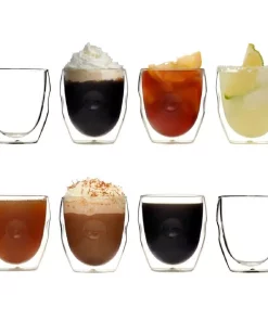 Made of durable, heat and condensation-resistant, mouth-blown borosilicate glass of the finest quality, the newly improved MODERNA glasses belong to the Ozeri Artisan Series of award-winning handcrafted drinkware. Each glass features MODERNA’s double-walled design that suspends beverages within an inner wall for the ultimate insulation, preserving drinks at their ideal temperature. The MODERNA’s opposing mouth-blown dimples make for a natural and effortless grip. Each glass is made to keep your hands cool even with your hottest drinks, and free of condensation with your chilled beverages. Whether it is an occasion for an espresso or some other beverage, borosilicate glass is completely resistant to acids, and your Ozeri glasses will never lose their original sheen. The patented MODERNA glasses are great for coffee, cappuccinos, hot or iced teas, cocktails, frozen beverages and much more. Each set contains 8 handmade 8 oz. glasses designed for lifetime use. The MODERNA glasses are completely microwave and freezer safe, and ship in an elegantly printed and carefully packaged box with a No-Hassle warranty.