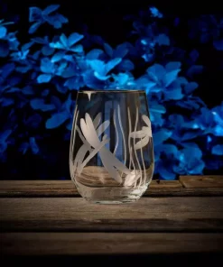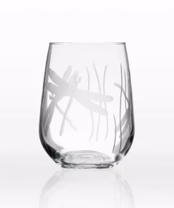 Our Dragonfly stemless wine is the ideal glassware to evoke summer evenings of shear relaxation. A picturesque dragonfly flutters over blades of grass carrying your worries away. Artfully diamond-wheel engraved and packaged in sets of four, this stemless glass is sure to become a favorite.