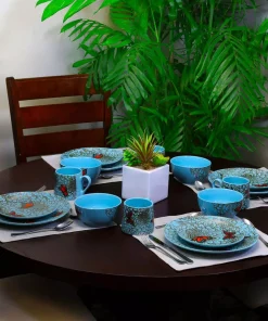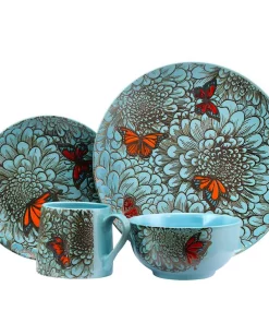 Elama’s Butterfly Garden 16 piece Dinnerware set will be the focal point of your next gathering. Bright blue set with hues of gold and Monarch butterflies can be used for every day meals and special occasions. Bring this beautiful set home today.