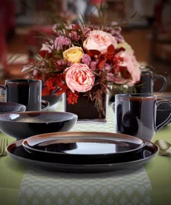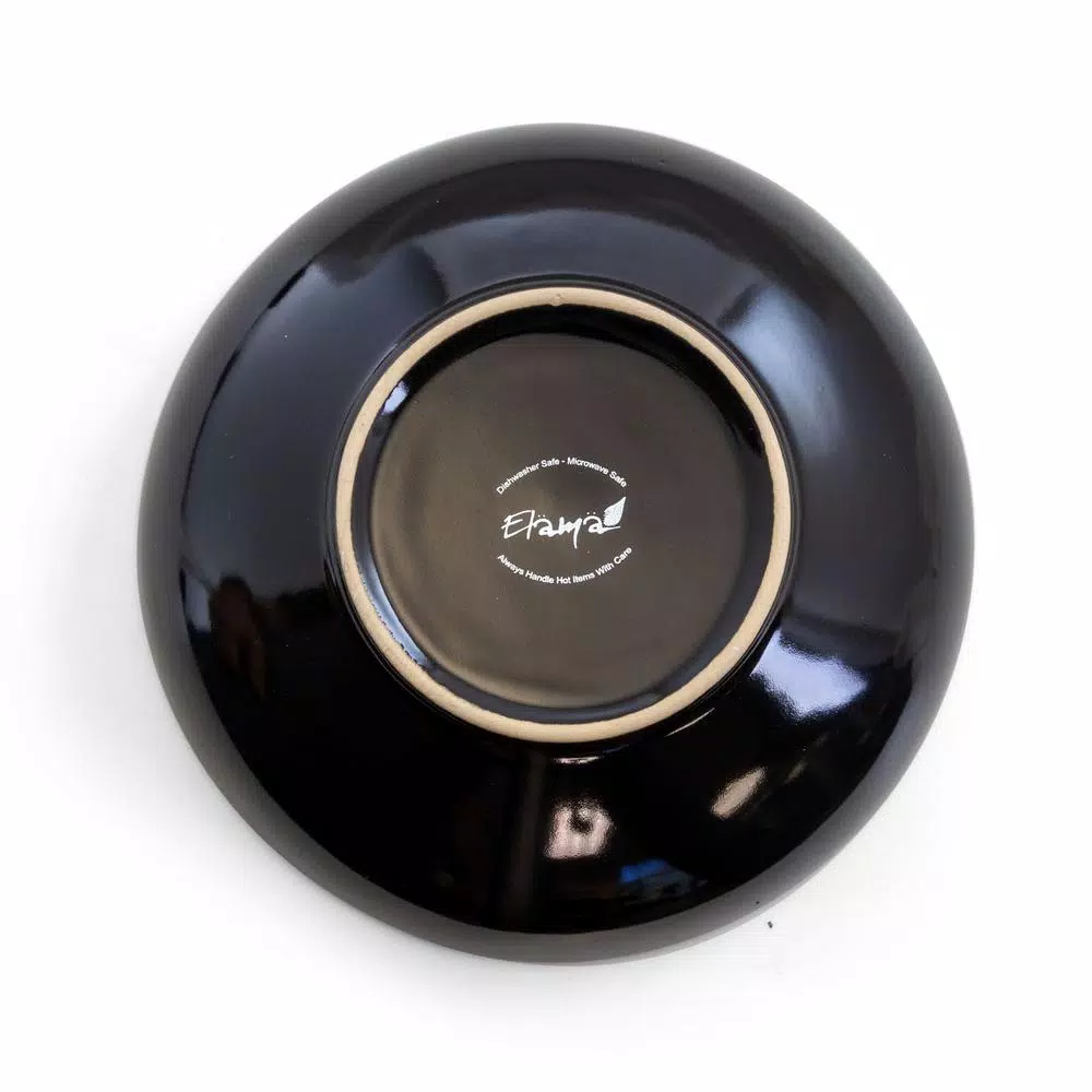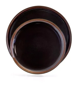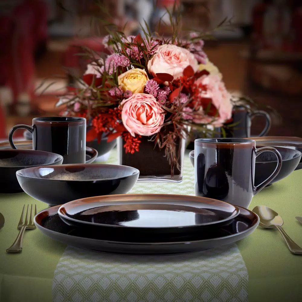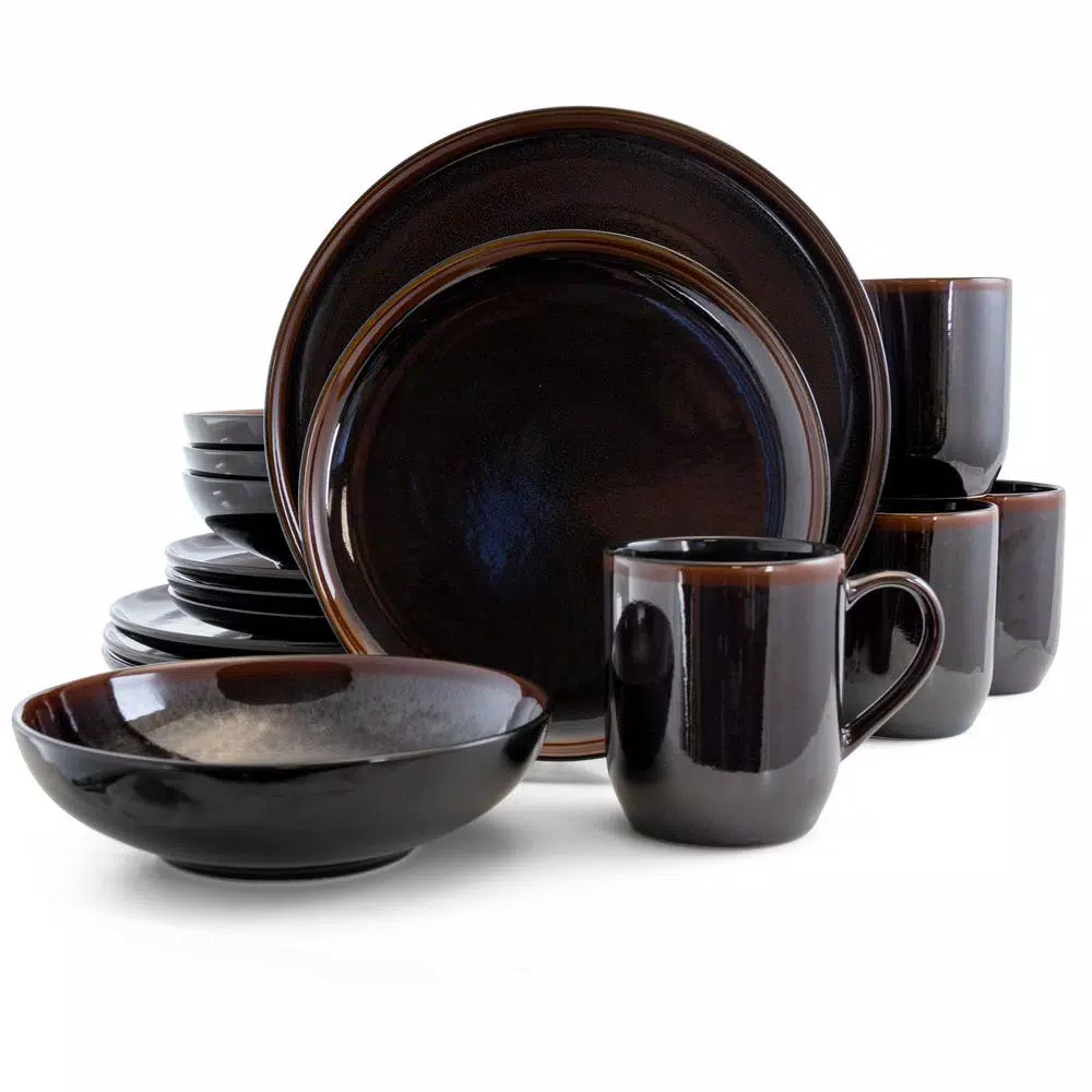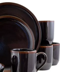 Elama Midnight Beach 16 Piece Round Stoneware Dinnerware Set was made with you in mind. The beautiful metallic plate set is both elegant and modern. Beautiful for special occasion settings and durable for everyday use. Constructed of Stoneware with a deep rich black tone, washed design and brown trim, this set is surly to make a statement. Each piece in this 4 person set is microwave and dishwasher safe, making is easy and convenient for for reheating and clean up.