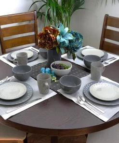 Elama is bringing charming tranquility to your home with the Tahitian Pearl dinnerware set. Featuring delicate shades of blue grey, this beautiful set will set a peaceful tone to your dining table for more gratifying mealtimes. Made of durable stoneware, this graceful set has been crafted for long-lasting satisfaction and enjoyment.