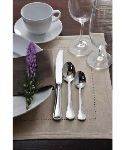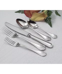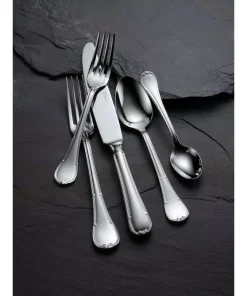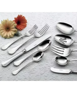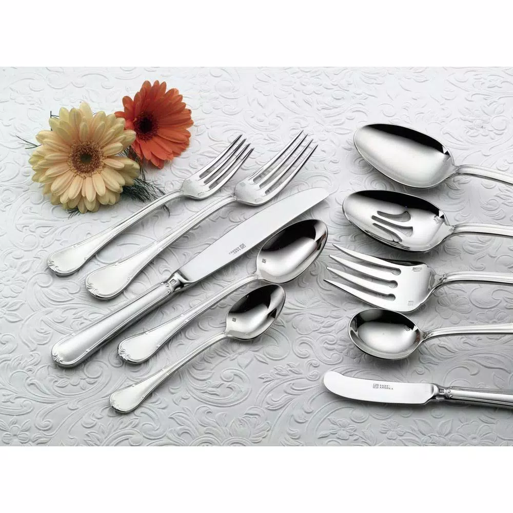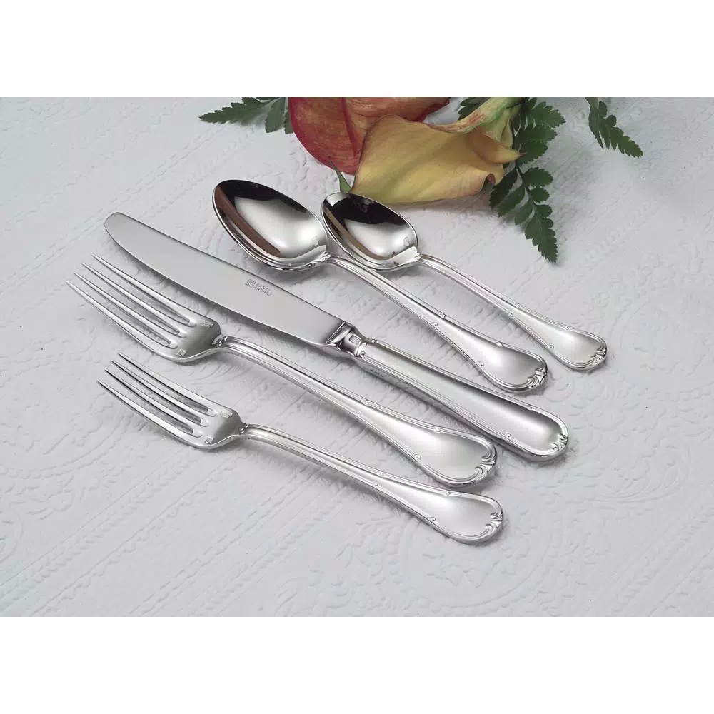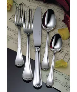 Styled in classic European tradition, Donizetti delivers the finest 18/10 stainless on a timeless shape. This elite pattern celebrates a delicate, scrolled border that culminates in a majestic crown. This flatware set is made of 18/10 Stainless Steel and is dishwasher safe.
