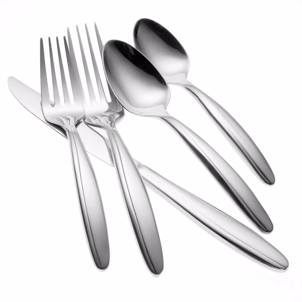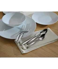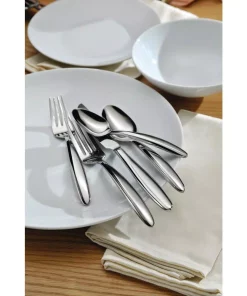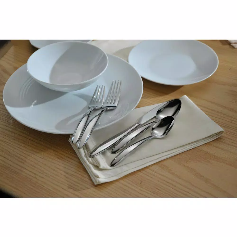 This premium pattern feels sexy and seamless in your hand thanks to its graceful curves, flawless mirror finish and swept surfaces. The name Glissade speaks to the fluid motion created by its shape. A dramatic arch in each piece makes a sculptural statement on your tabletop.