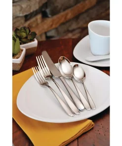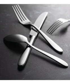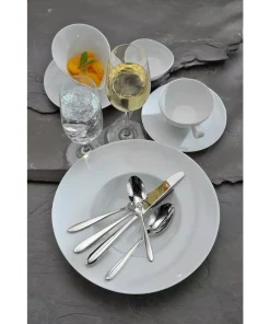 This fine flatware boasts a sleekly crafted handle with a softly rounded tip. Mascagni is at home on virtually any tabletop, from casually elegant to the most formal. This flatware set is made of 18/10 Stainless Steel and is dishwasher safe.