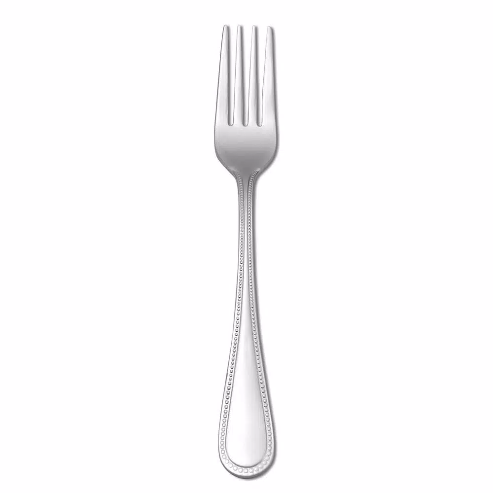 A strand of graduated beads embellishes the border of Pearl. This refined flatware offers continental sizing and unequaled durability, making it suitable in both American and European decors. This flatware set is made of 18/10 Stainless Steel and is dishwasher safe.