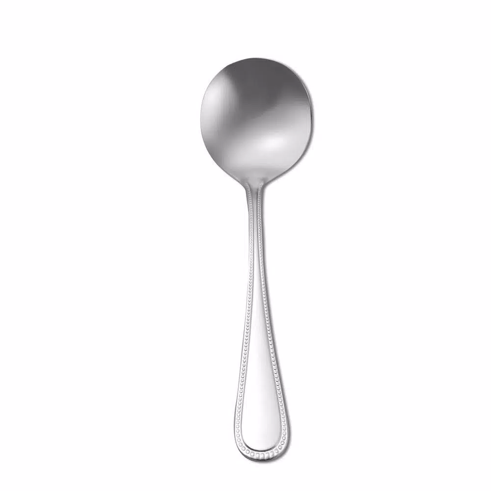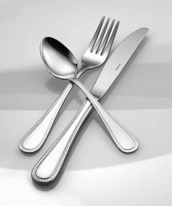 A strand of graduated beads embellishes the border of Pearl. This refined flatware offers continental sizing and unequaled durability, making it suitable in both American and European decors. This flatware set is made of 18/10 Stainless Steel and is dishwasher safe.