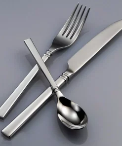 Clean and detailed with a narrow point astragal, Shaker pleases visually with clean symmetry and balance. This pattern pays homage to its design namesake, the Shaker community of the 18th century. This flatware set is made of 18/0 Stainless Steel and is dishwasher safe.