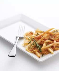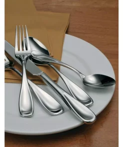 Classic tines feed into dramatic teardrop handles with a curved, slightly concave tip. This pattern is great for casual entertaining and everyday use, constructed of heavy weight stainless steel. Its wide teardrop shape and concave end provide a modern look with a comfortable feel. Voss II is highly durable, has a soft sheen and is highly economical.