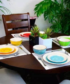 The Gibson Home Confetti Band Mix & Match Dinnerware Set is a fun set to add to your home. This set comes in 4 mix and match colors to add a bit of whimsy to your next dinner. Display your wonderful culinary creations on this beautiful set.