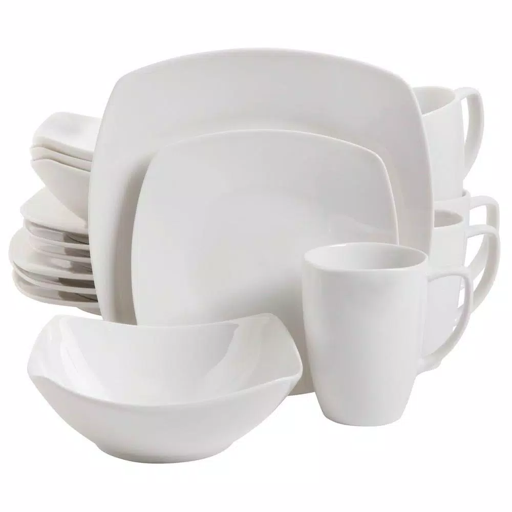 Gibson Elite’s Zen Buffetware Dinnerware Set impresses with square shaped fine ceramic pieces in classic white. Its exquisite shape and generous surface are ideal for creating beautiful culinary displays on your table. Perfect classic set for everyday use as well as dinner parties. The set is dishwasher safe for easy cleaning. The set is microwave safe for a quick reheat.
