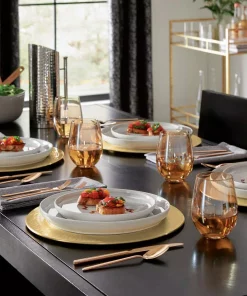 Contemporary shapes and a unique copper finish combine to enhance everyday dining with the Home Decorators Collection Brenner 40-Piece Flatware Set. Featuring service for 4-people, the set includes 4-dinner forks, 4-dinner knives, 4-dinner spoons, 4-salad fork and 4-teaspoons all crafted in 18/0 stainless steel. Theyāre dishwasher safe, although citrus-scented detergents should be avoided.