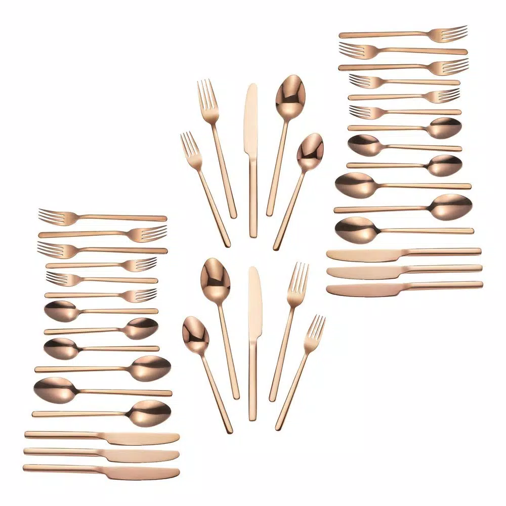 - Brenner 40-piece flatware set made with 18/0 stainless steel with copper finish