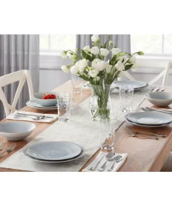 Farmhouse-style flatware lends a casual elegance to your dinner table in our Home Decorators Collection Maywood 45-Piece Set with service for eight people. Gleaming with a mirror finish and traditional teardrop-shaped handle, this stainless steel set includes 8 dinner forks, 8 dinner knives, 8 dinner spoons, 8 salad forks, and 8 teaspoons, as well as a butter knife, sugar spoon, serving fork, solid serving spoon and slotted serving spoon. While they’re dishwasher safe for easy cleaning, we recommend avoiding citrus-scented detergents.