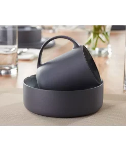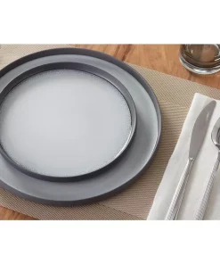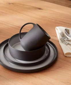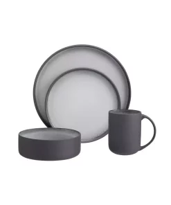 The Home Decorators Collection Pierce 16-piece dinnerware set combines tones of charcoal and shadow gray for a serene look. Salad and dinner plates are rimmed by dark charcoal gray around misty, light shadow gray centers. Mugs and bowls visually echo the contrast with shadow gray interiors encircled by charcoal gray exteriors. Reactive glaze creates a beautifully unique appearance and color may vary from piece to piece. This modern stoneware is safe for dishwasher and microwave use.