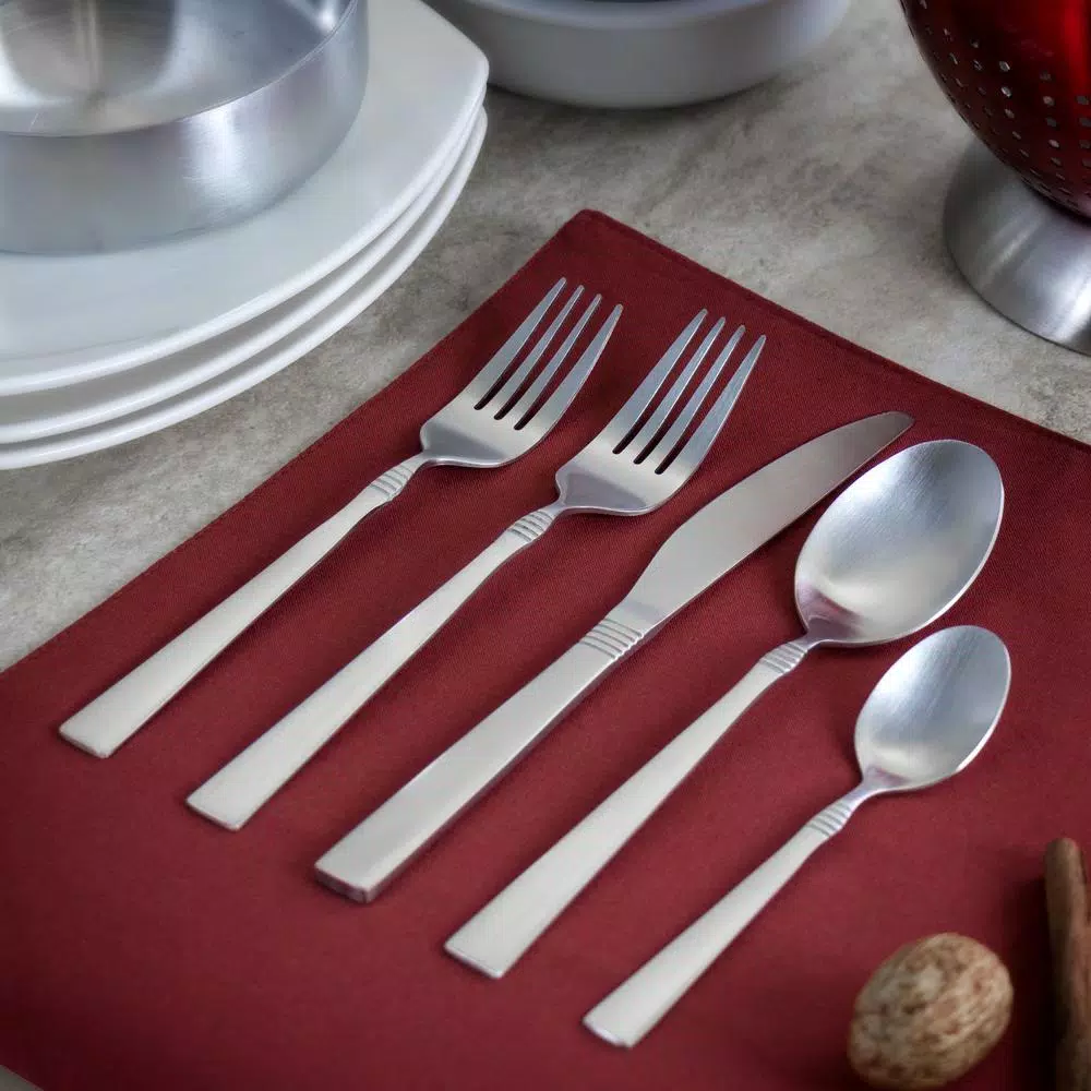 The MegaChef Cravat 20-piece Flatware Set is made of high quality food grade stainless steel, the quality material in high standard resists corrosion and rust, ensures long-lasting use. The Cravat Silverware Set is smoothly finished with no sharp edges, safe and comfortable for both adults and children. Each piece in this Utensil Set is versatile and perfectly weighted and balanced to feel comfortable in your patrons hands. With its proper sizes this set can fit perfectly with your other dinnerware or tableware sets.