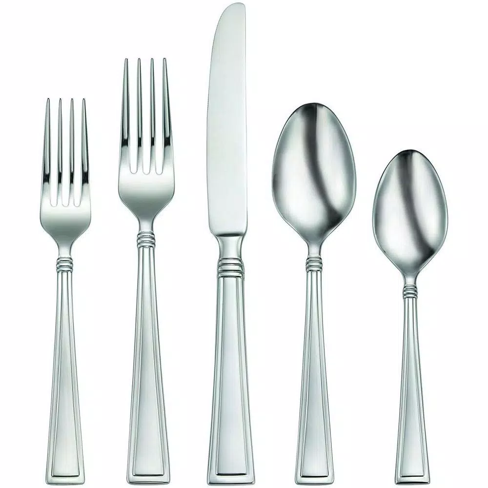 - Set includes 8 each: salad fork, dinner fork, dinner knife, dinner spoon and teaspoon