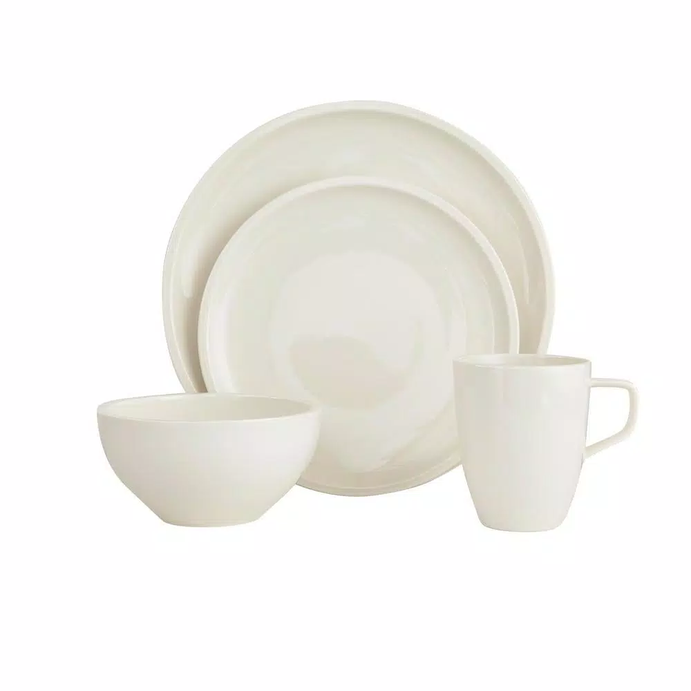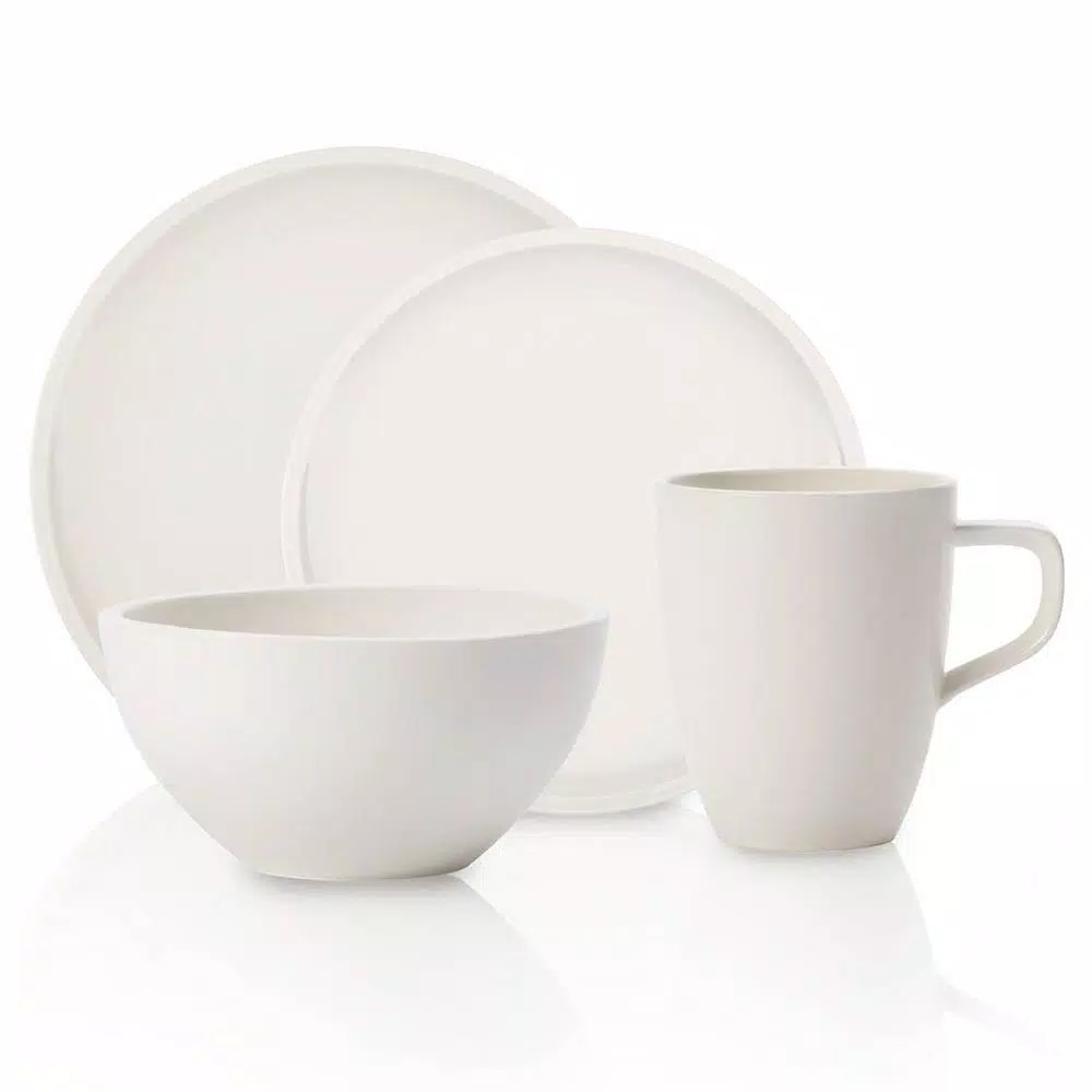 Unique craftsmanship and an exciting mix of modern materials make the award-winning Artesano particularly fascinating. Inspired by a farm-to-table philosophy, this casual dinnerware adds a rustic touch to your culinary creations. Enjoy the clean, modern wide-edge plates and bowls, and add modern style to your table with serving accessories from sustainable acacia wood, cork, glass and slate. Create a sophisticated stylish presentation that is both tasteful and grounded by the principles of exceptional design. 4 piece placesetting includes 1 each: dinner plate, salad plate, mug and rice bowl. Earn yourself a little more leisure time with dishwasher safe durability and microwave safe convenience. High-quality German-made porcelain provides upscale appeal and lasting durability.Villeroy & Boch has been a premium manufacturer of fine porcelain, glassware, flatware, and more since 1748; This is proudly manufactured in our German factory.